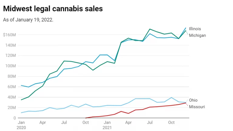 Reports show Illinois, Michigan, and Mass. cannabis sales rallied in the fourth quarter of 2021 Cannabis sales in states that allow for adult-use and