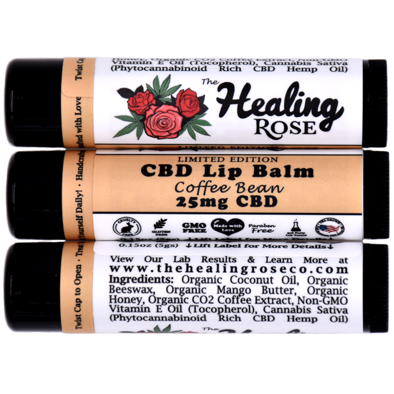 Our formula was created to help repair chapped, cracked lips, help with any soreness, and keep your lips moisturized. Take a look at the ingredients listed on a stick of big box store lip balm, and you’re likely to see an astounding array of unpronounceable ingredients. We don’t think lip balm should be that complicated! That’s why The Healing Rose lovingly crafts each scent of CBD lip balm with simple, understandable ingredients like Organic Coconut Oil, Organic Beeswax, Organic Mango Butter, Organic, Fair Trade Honey, Organic Essential Oils or Extracts (for flavor), Non-GMO Vitamin E Oil and 25mg CBD from Full Spectrum CBD Hemp Oil. Available in a variety of flavors, you are sure to find one that is your favorite!
